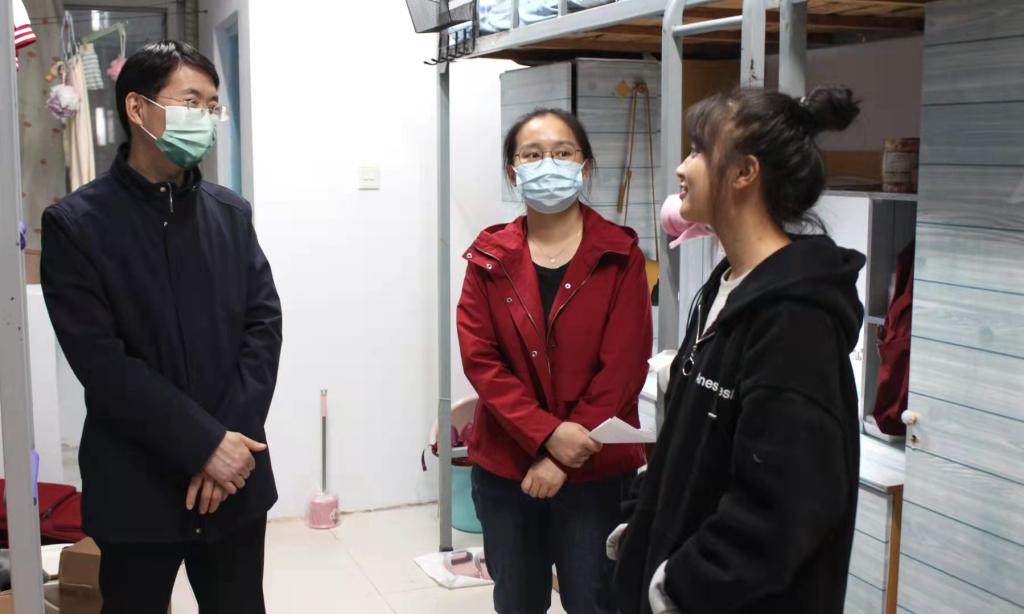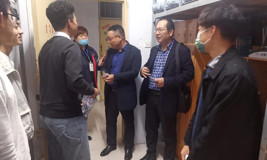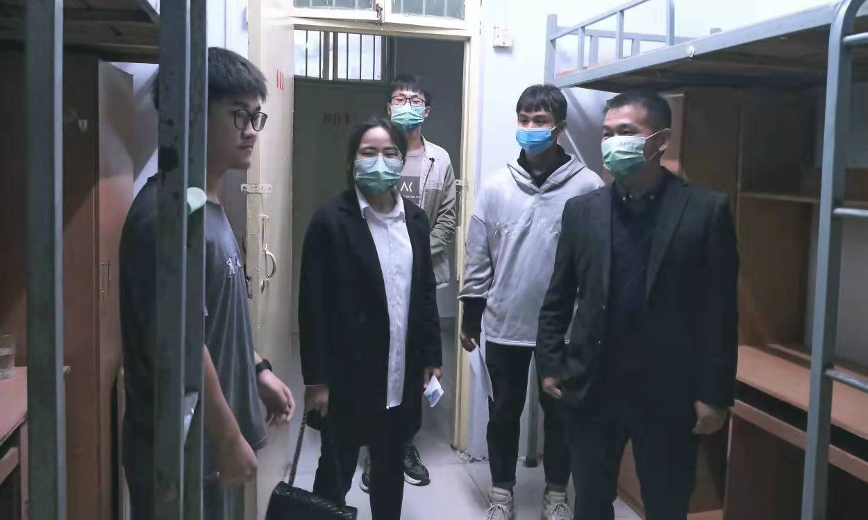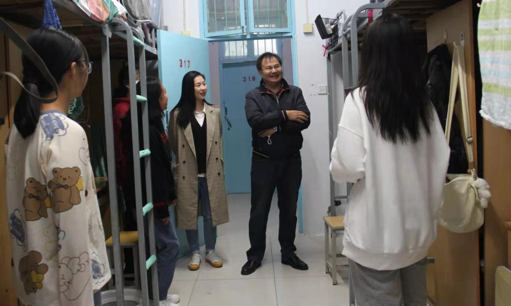 郑洪涛向同学们介绍了学院学习生活的基本情况,叮嘱新生做好疫情防控,鼓励大家相互交流、相互帮助,迅速适应新的学校生活,并对同学们寄予厚望,希望大家能够专注学业,树立远大志向,同时积极参加各项活动,享受校园生活。在了解到一名新生和三名其他年级的学生住在一起时,郑洪涛当即联系有关负责人为该生调整宿舍,将她和同年级学生安排在一起。